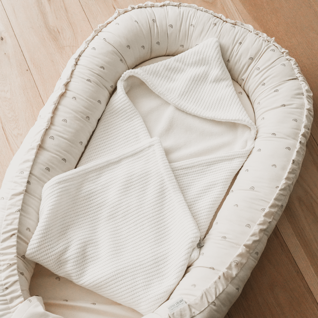 Een wikkeldoek is superhandig om je (pasgeboren) baby lekker warm te houden of wanneer je je kindje net in bad hebt gedaan. Een musthave voor iedere babyuitzet dus! Deze wikkeldoek met gebreide stof gecombineerd met super zachte bamboekatoen is lekker warm en daarom geschikt voor de koude dagen. De omslagdoek is aan twee kanten te gebruiken.