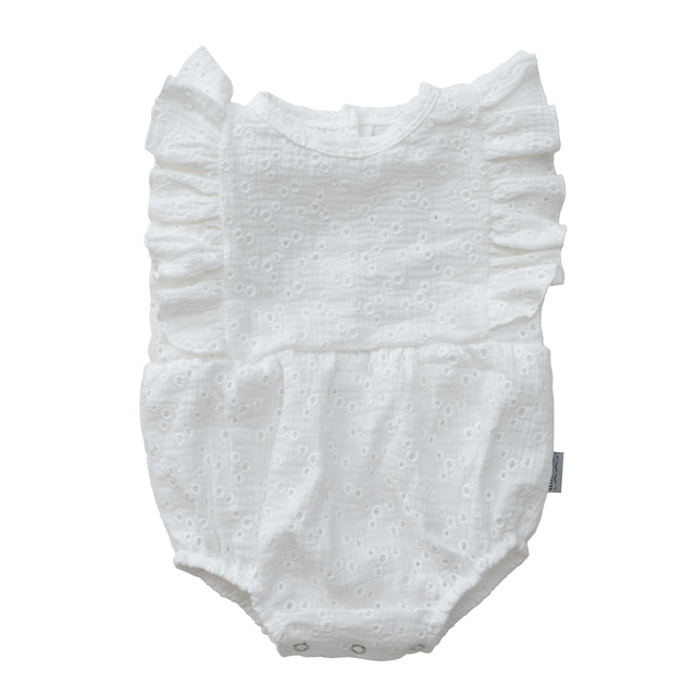 Deze schattige bodysuit met ruches is een echte musthave voor je kleintje. Gemaakt van zachte luchtige hydrofiele stof met borduursels.
