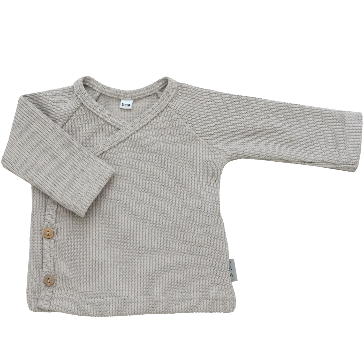 Overslagshirt Gebreid - Sand - 50/56 wordt speciaal voor jou met de handgemaakt. De bezorging duurt daarom 2-5 dagen, afhankelijk van de drukte.