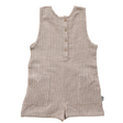 Luchtig, zacht en tijdloos! Dit katoenen unisex jumpsuit met zandkleurige strepen is perfect voor de zomerse dagen. De ademende stof, neutrale strepen en relaxte fit zorgen voor een outfit waar je kleintje vrij in kan bewegen én er superlief uitziet.