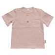 Stoere jongens t-shirt gemaak van een fijne jersey stof. Maat 98/104 en 110/116 hebben 3 houten knoopjes bij de sluiting van de hals.